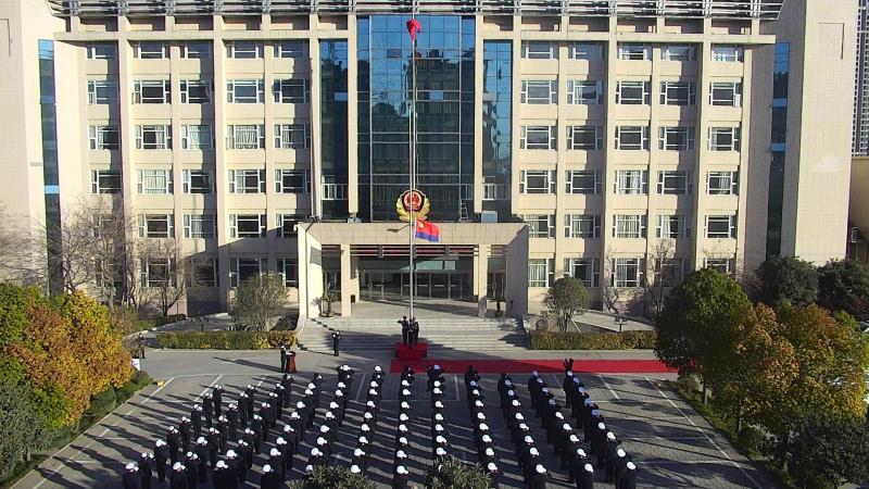 迎着初升的太阳,高速总队民警列队整齐,庄严肃立,3名旗手精神抖擞地迈着正步护卫警旗就位,在慷慨激昂的《中国人民警察警歌》歌声中,警旗冉冉升起。大家高唱警歌,并向警旗敬礼。