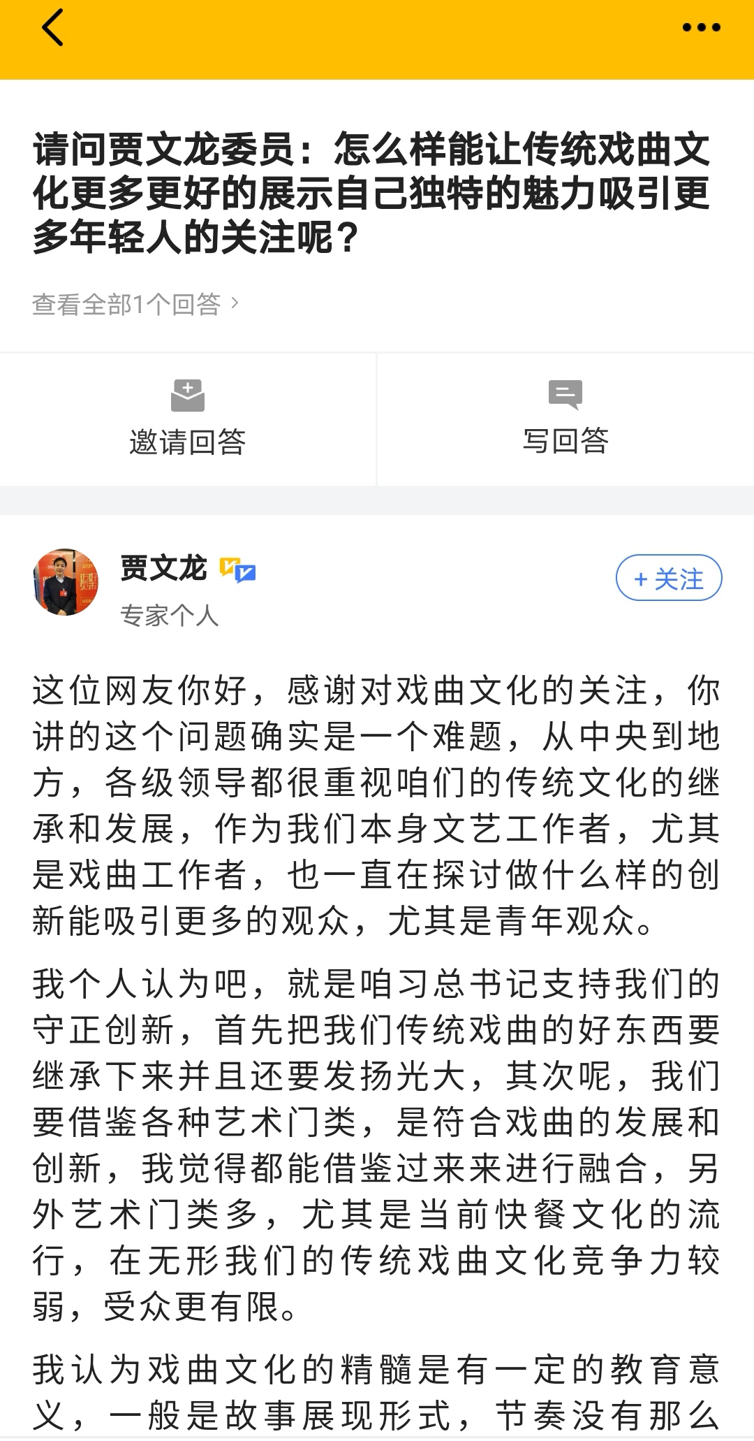 2021年两会,顶端新闻邀请代表委员上顶端和网友互动,引起网友强烈关注,纷纷提问代表委员。1月18日,顶端网友向河南省政协委员贾文龙发出提问:怎样能让传统戏曲文化更多更好地展示自己独特的魅力吸引更多年轻人的关注呢?