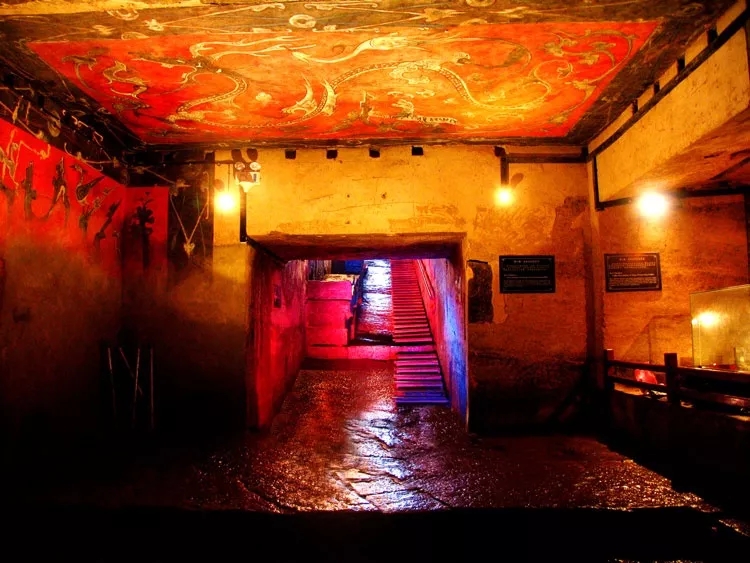 除了在河南博物院能够饱览《四神云气图》的风采,在芒砀山旅游区的汉梁共王陵,也有一幅复制的壁画,还原更为真实且令人震撼的场景。