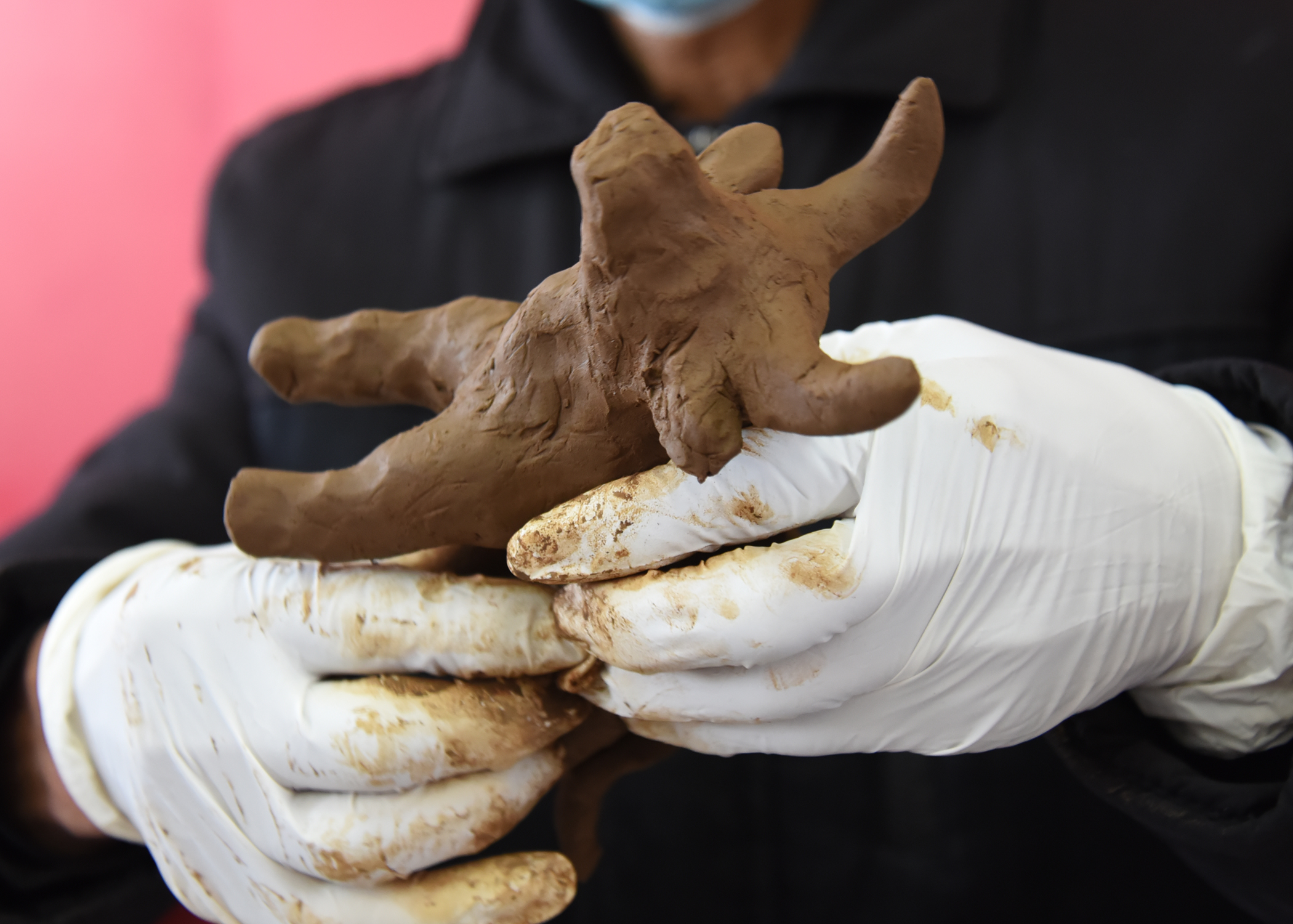 该县文联邀请了淮滨县泥塑之乡的省级传承人、信阳市劳模郑镇江大师来到固城乡詹营村为大家作培训指导。会议室内座无虚席,男女老少静静聆听。培训采取互动的形式,寓教于乐,提高大家创作兴趣。只见老艺人拿起一块和好的泥巴,一边介绍一边捏制,不到20分钟时间,一件栩栩如生的耕牛就捏制完成了,引来课堂阵阵掌声。老艺人还现场捏制了马、猴、鸟等吉祥物。为学员传授了泥叫吹的烧制、晾晒、彩绘等工序技巧,并认真解答了贫困户的提问。