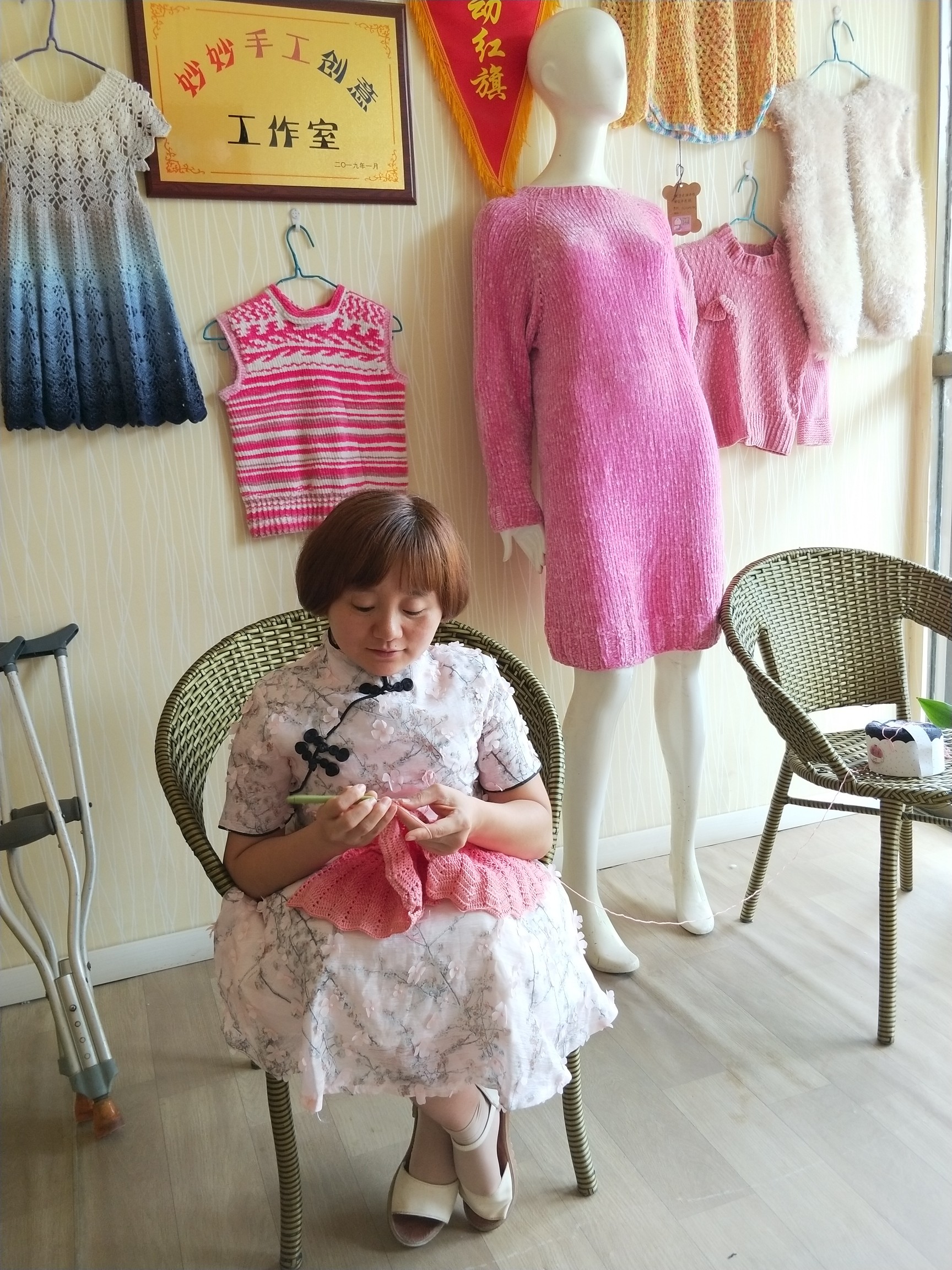 王妙告诉记者,小时候她就很喜欢编织手工。“本来是一根线,通过手工编织变成了一个作品,我觉得特别有意思。”王妙告诉记者,买了电脑后,她开始上网学习,参加腾讯课堂,看到学到的东西更多也更丰富,自己的世界也像重新被打开一样。
