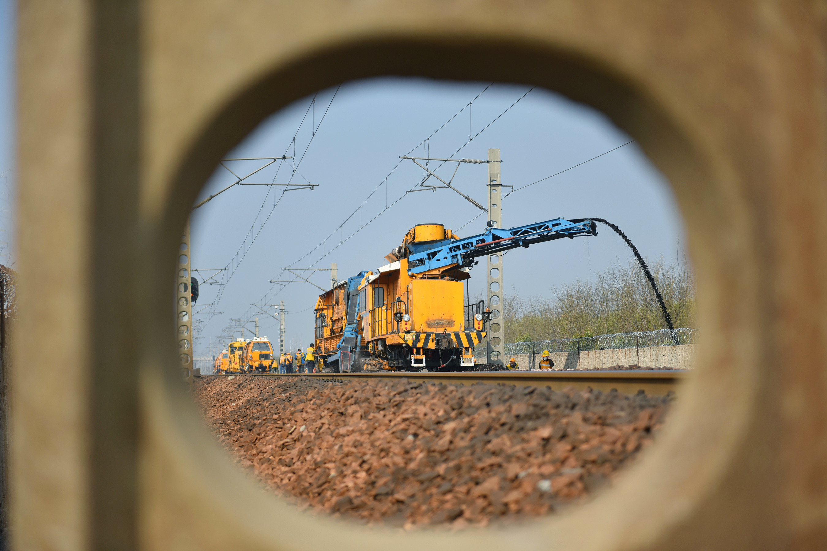 “这里仅是其中一处施工点,在西至灵宝、东至商丘、北至济源、南至平顶山的数百公里范围内,我们共投入了十几个车间,近百台大型养路机械,上千名作业人员,通过清筛、捣固、打磨等施工为线路做‘深度SPA’,全面‘舒筋活络’。”负责现场施工的郑州工务机械段大修一车间主任孟艳军说,此次陇海线和焦柳线集中检修于3月9日开始至4月16日结束,该段计划完成线路清筛100公里、捣固404公里、打磨639公里、换轨287公里。