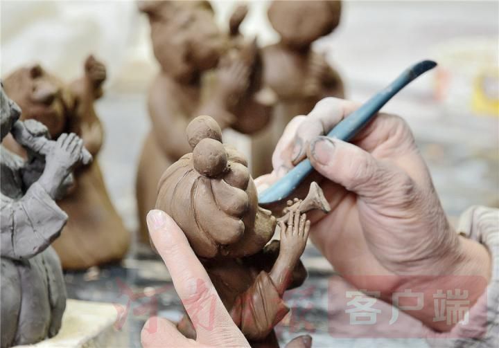 3月16日,在孟津县朝阳镇南石山村的洛阳九朝文物复制品有限公司,一名工艺美术师正在纯手工制作和雕塑《唐宫夜宴》中的“唐朝胖妞儿”,其人物形象具有很强的艺术感染力。