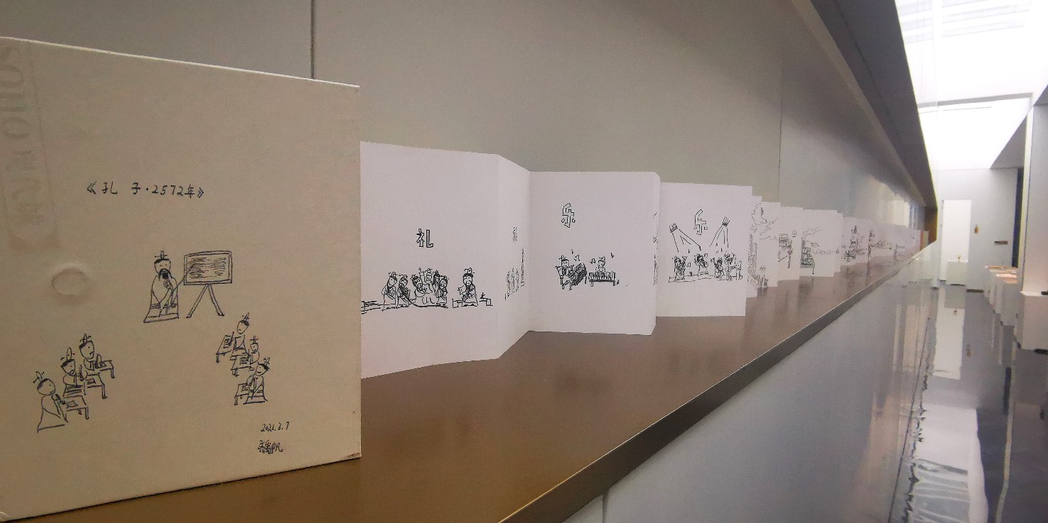 在展览二楼,一幅充满童趣的作品吸引了记者的注意——《孔子·2572》。今年12岁的小作者棋子将无从连贯的种种故事或典故,用漫画的形式展现了一个中国少年的真实“书写”,一知半解、似懂非懂之间恰到好处……