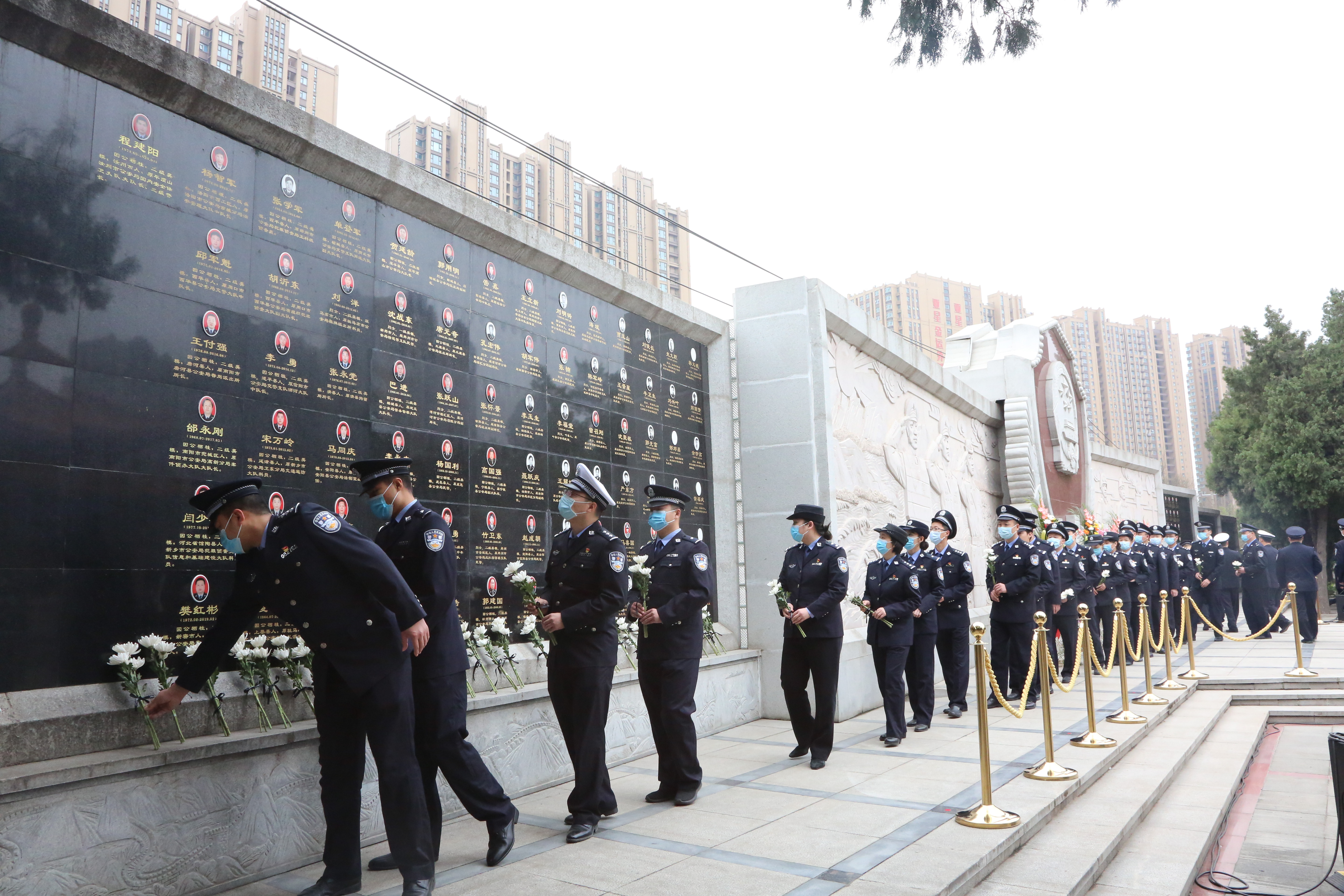 上午9时,厅机关100余名民警代表手持菊花,肃立在河南公安英烈纪念墙前,通过默哀致敬、敬献花篮、重温入警誓词、青年民警表态发言等,向牺牲的战友表达敬意、寄托哀思。