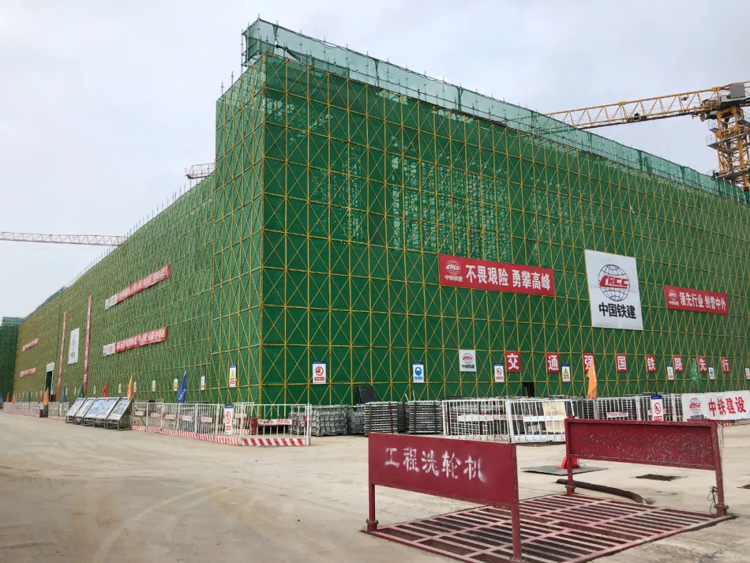 5月14日,平原新区站站房主体结构封顶。