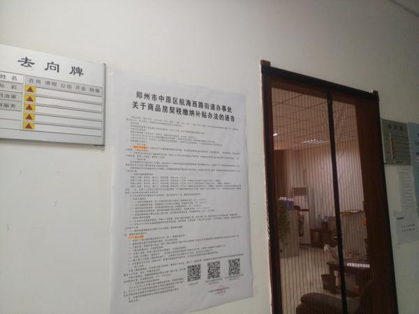 5月17日下午,河南商报记者在航海西路办事处一间办公室门口,看到了这份《通知》以及配套的契税缴纳、补贴申报等流程示意。