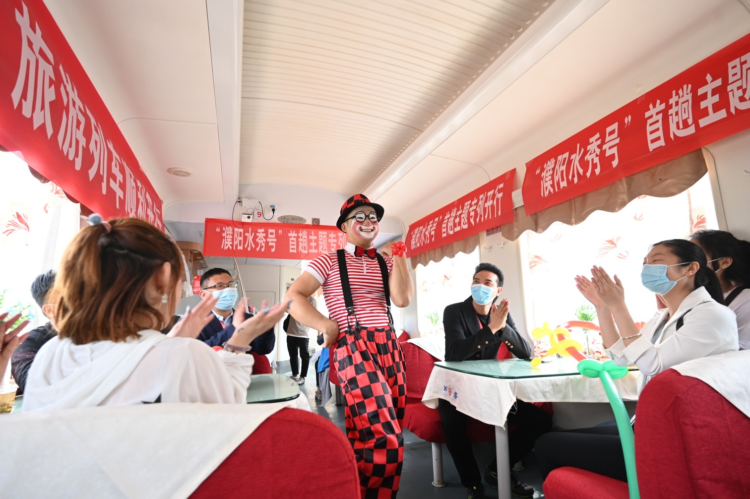 据了解,作为全国首趟杂技主题旅游列车,“濮阳•水秀号”旅游专列由中国铁路郑州局集团有限公司与濮阳市人民政府共同组织策划,是今年濮阳市迎来的首趟专列。