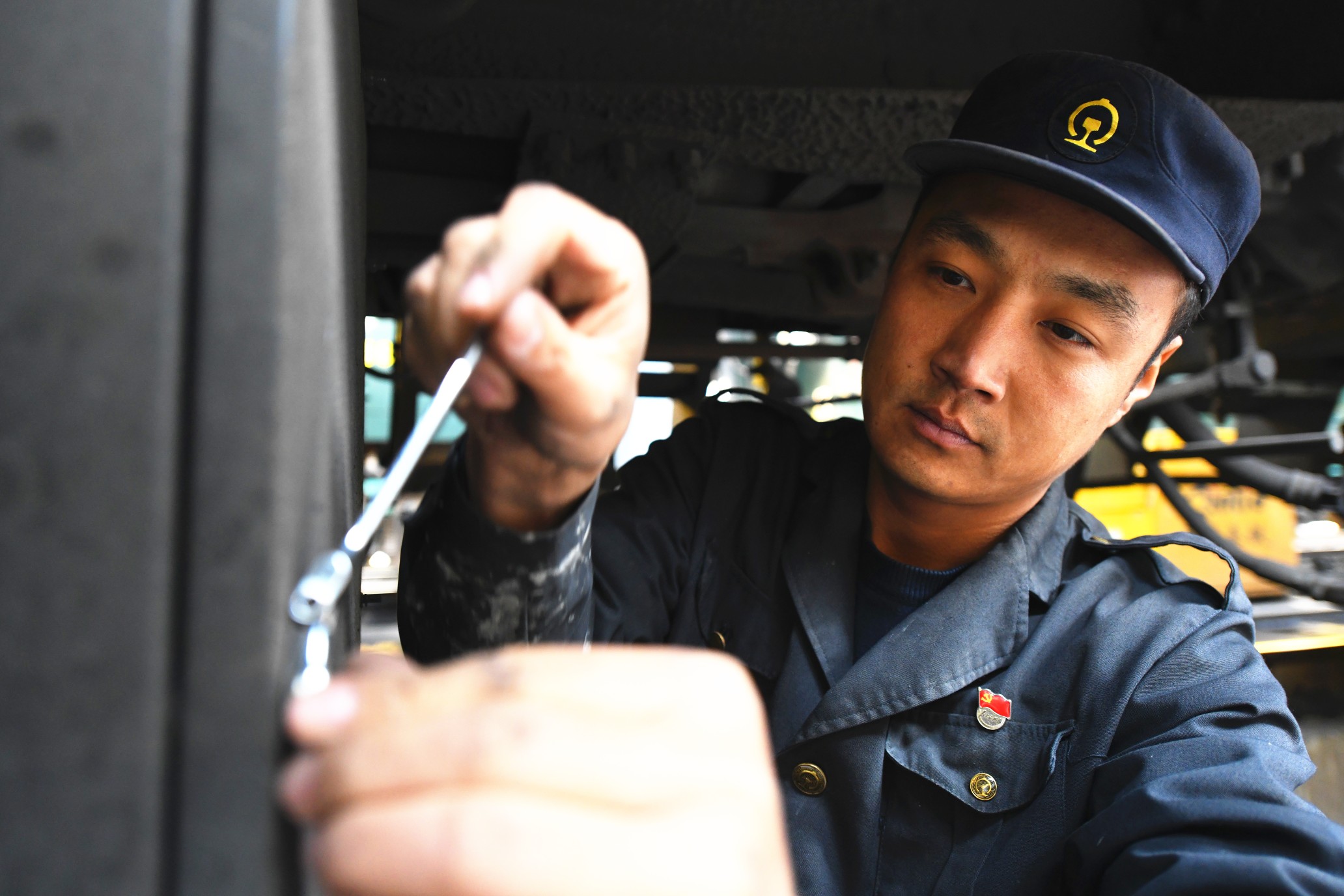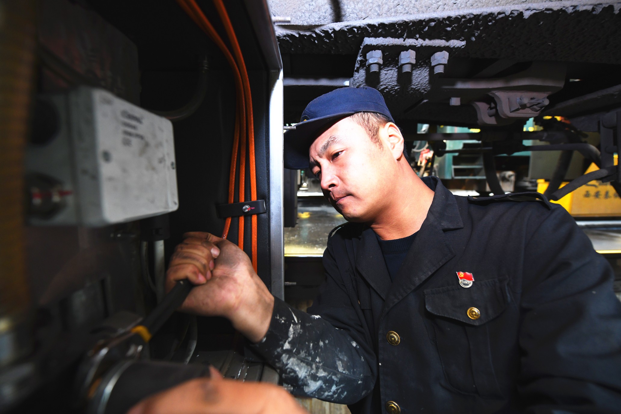 “过去列车上的厕所是直排式的,为了不污染车站,到站就要关闭。现在有了集便器,就不怕了。”1.86米的大高个,穿梭钻爬在车厢之中,王振波只能小心行动,但他动作很灵敏,锤随眼到,手随心至。检车是个功夫活儿,小锤敲一敲集便器的外壳,从声音的变化中查找故障;打开集便器电源箱,检查密密麻麻的电路和加热丝,一根都不能错,出现松动也不行。