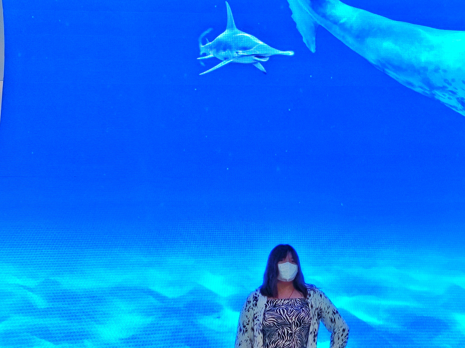 5月19日下午,记者来到4号线七里河站实地探访。记者发现,该站是地铁5号线和4号线的换乘站,人流量较大,在地下一层大厅内三块巨大的曲面屏颇为震撼,屏幕上循环播放着郑州的城市风光以及海底世界的画面,其中海底世界的画面每隔十多分钟就会出现一次,一次持续三分钟左右,鱼群的游动显得立体且真实。在现场有专门等候的游客,每当海底世界的画面出现时就连忙上前摆起姿势拍照。