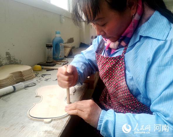 确山全县开办制琴及相关企业150多家,年产提琴40余万把。人民网 徐驰摄