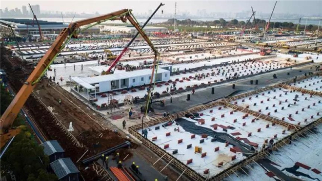 火神山医院占地面积7万平方米,建筑面积3.4万平方米,床位1000张;雷神山医院占地面积22万平方米,建筑面积7.99万平方米,床位1600张。建设工期从正常情况下的至少两年时间分别压缩到了10天和12天,不少人说:“这几乎是不可能完成的任务!”