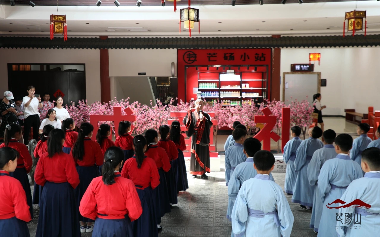 伴随着古典音乐声响起,小朋友们身着汉服缓缓入场,在汉礼仪老师的带领下,开始一段富有汉文化特色的成童礼活动。据介绍,华夏九礼中的成童礼能够促使孩子们形成明礼、忠信、孝义等多方面优秀的传统品德,并立下报效国家的大志,这也是芒砀山旅游区近年来研学课程中重点打造的传统文化体验项目之一。