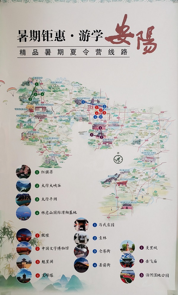 依托安阳十大中国研学旅游目的地城市品牌优势,发挥中国文字博物馆、红旗渠、殷墟、岳飞庙等丰富的研学基地和红旗渠精神营地资源,面向省内外旅行社等中小学夏令营组织方推出优惠夏令营线路。
