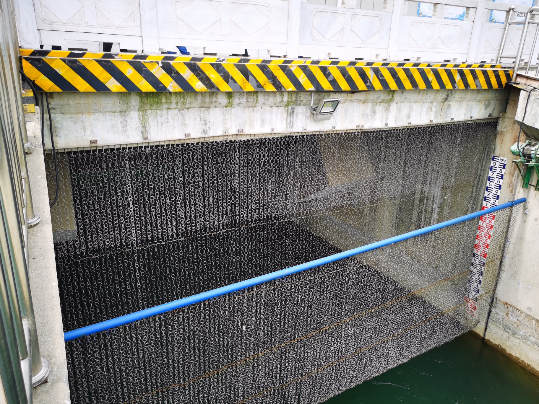 在渡槽的入水闸,大河网记者发现在每个闸孔都有一面金属材质的网。