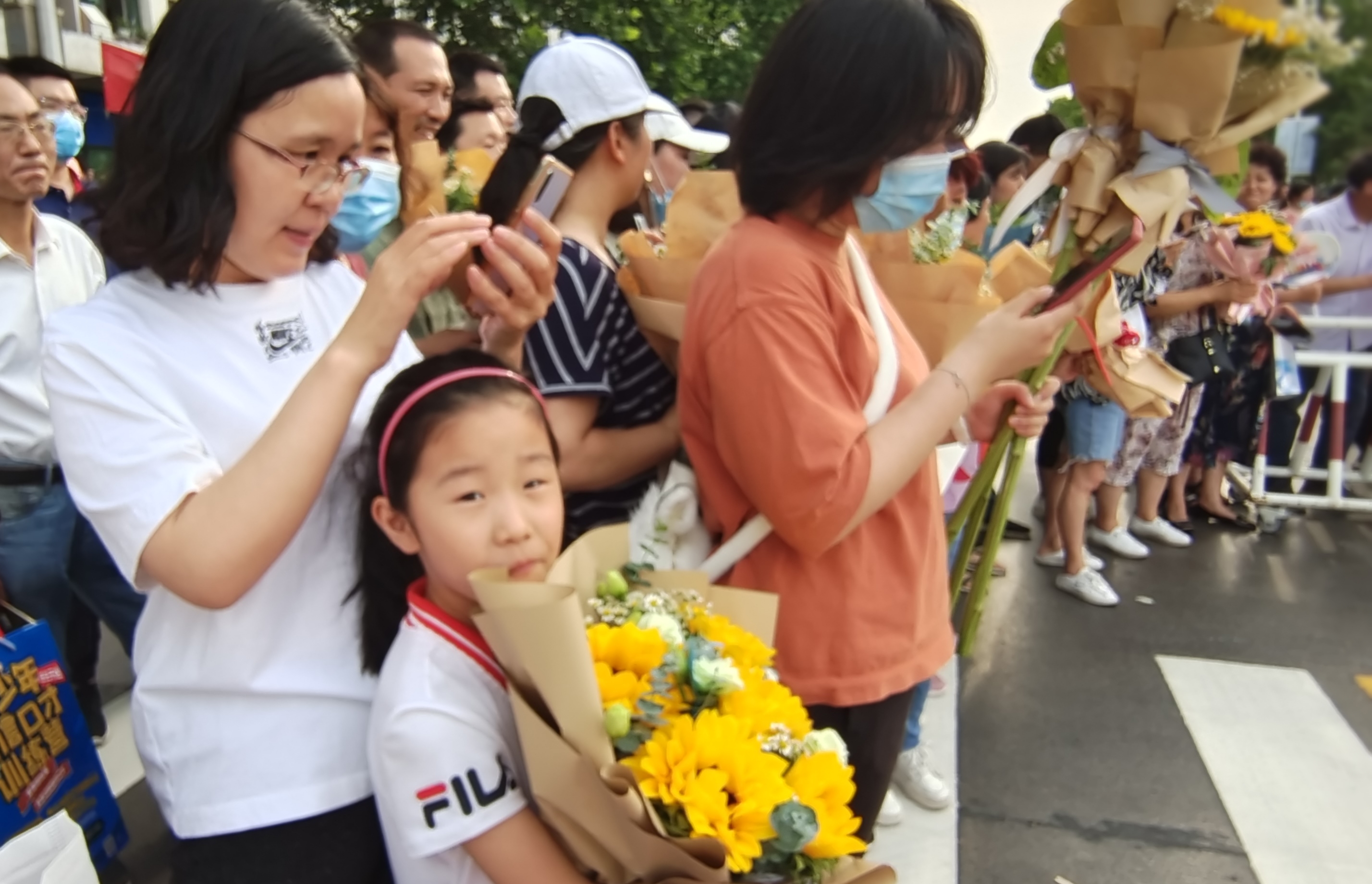 现场也有几位提前保送的同学手捧鲜花为同学们加油的。“我知道我们很棒,我的同学们更棒!”言语之间自信满满。