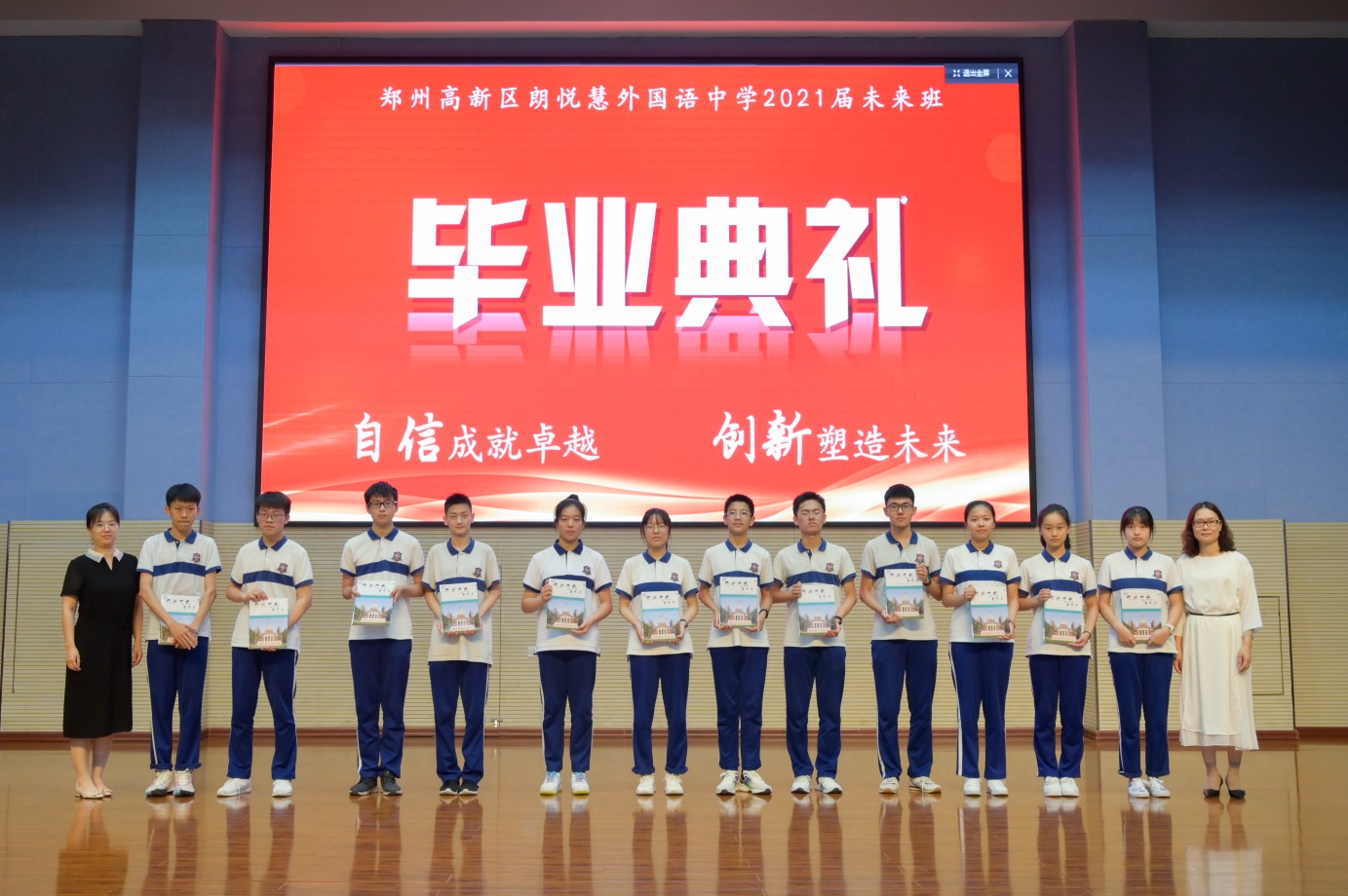 2018年,郑州高新区朗悦慧外国语中学与大河学堂合作共建第一届信息化特色教学班级——未来班。三年时光转瞬即逝,本次毕业典礼以“自信成就卓越创新塑造未来”为主题,为首届未来班学生们的三年初中学习生活画上了一个圆满的句号。