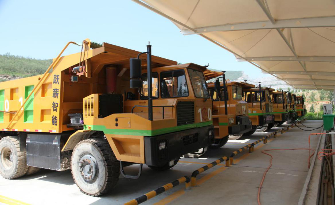 河南能源焦煤公司千业水泥5G无人驾驶运输车正在充电站进行充电 摄影/刘建军