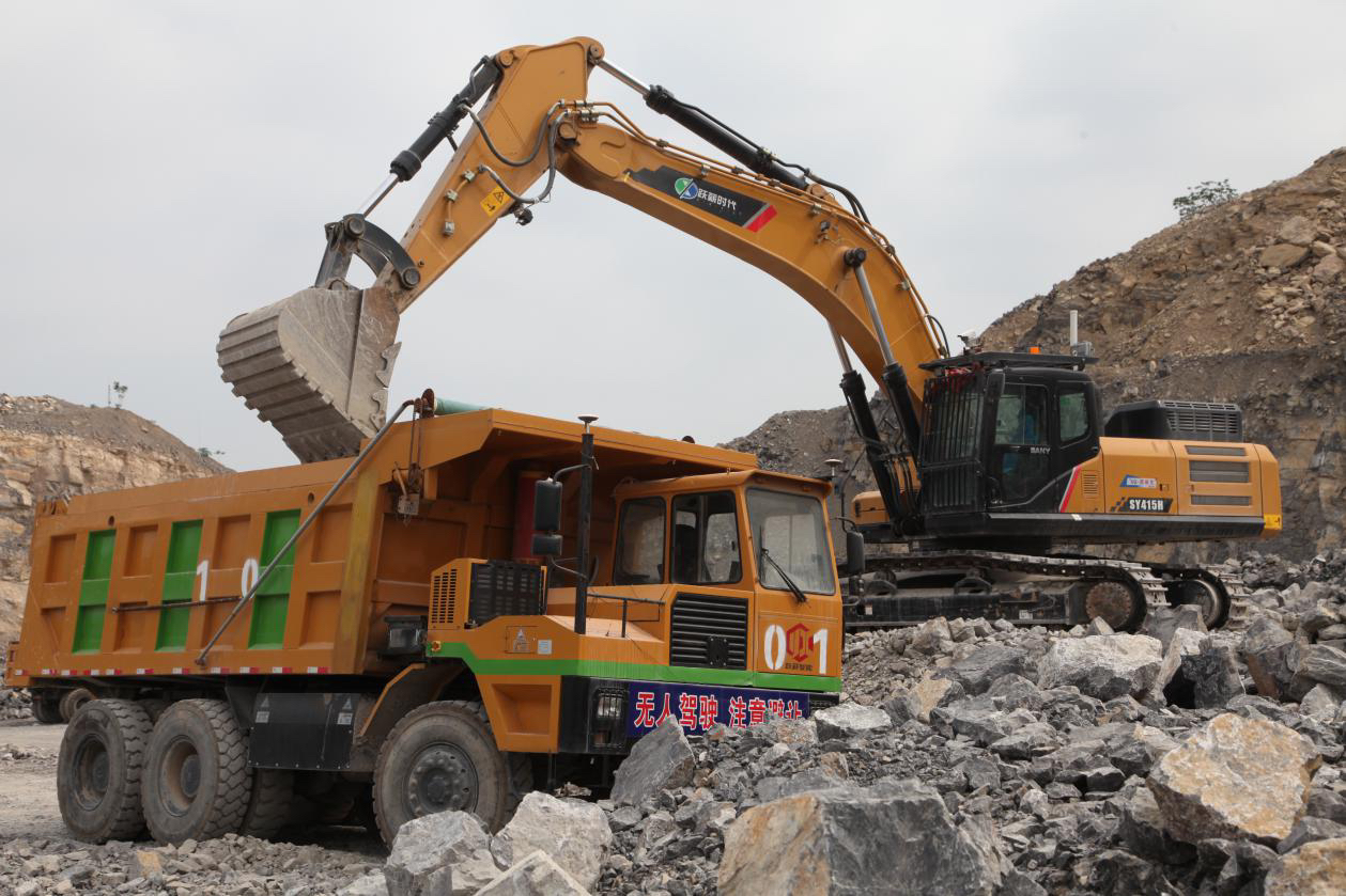 河南能源焦煤公司千业水泥5G无人驾驶挖掘机正在露天矿区现场作业 摄影/刘建军