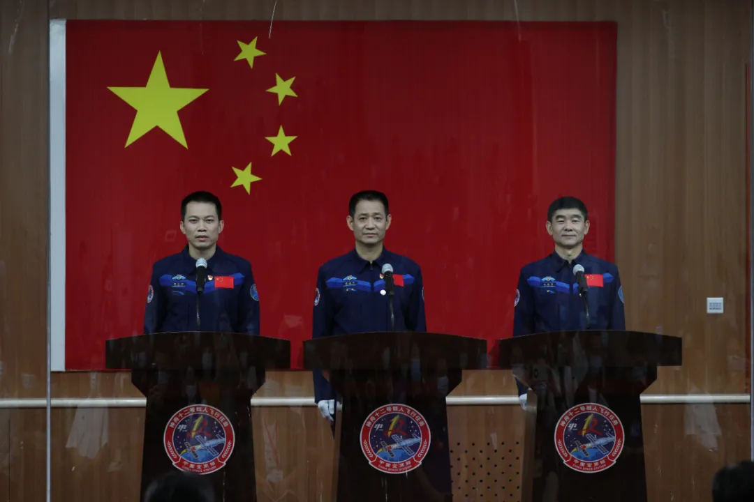 今天上午11时,聂海胜、刘伯明、汤洪波三名航天员在酒泉卫星发射中心问天阁与中外媒体记者集体见面。这是神舟十二号飞行乘组的首次亮相。