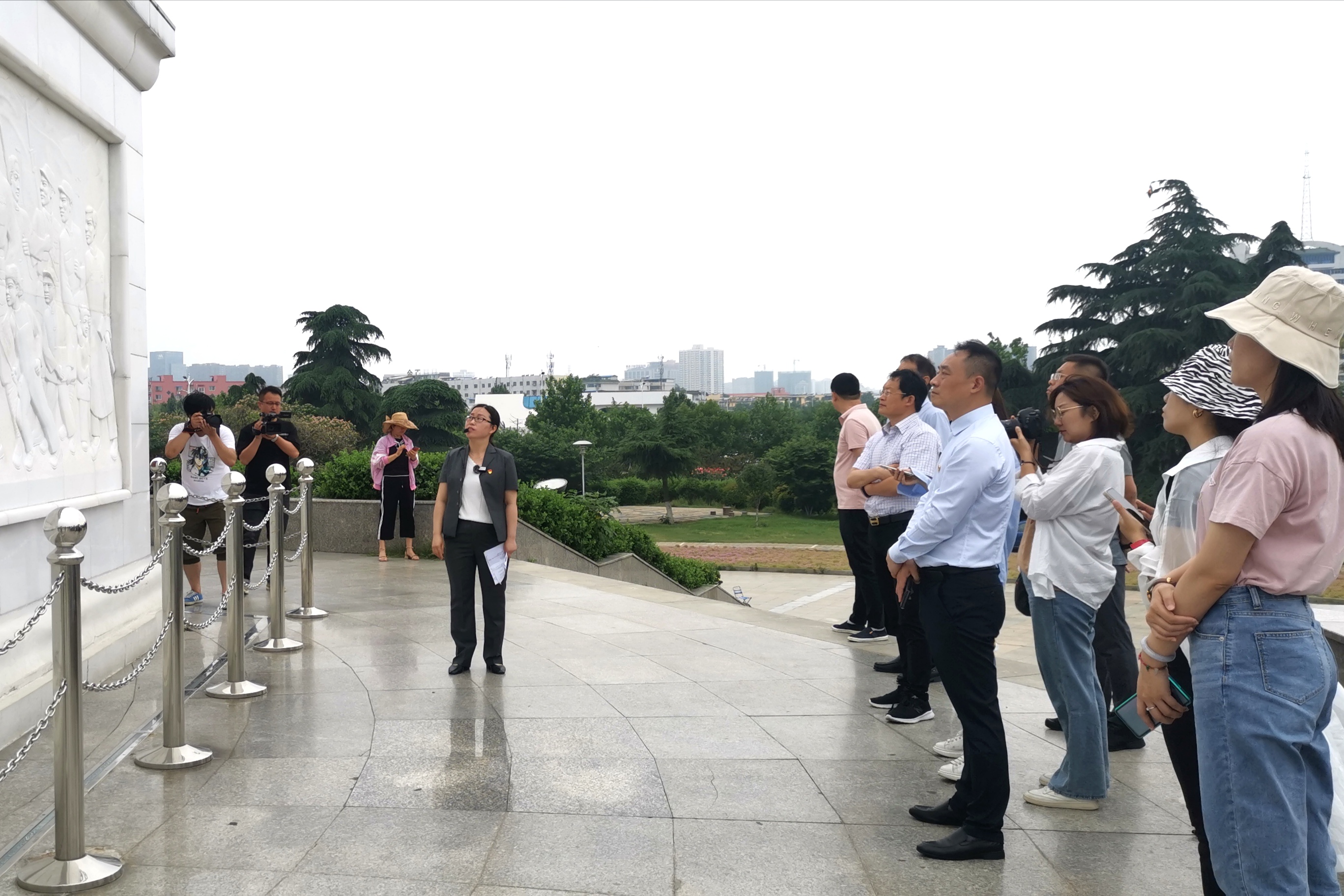 采访团在南阳解放纪念碑参观采访