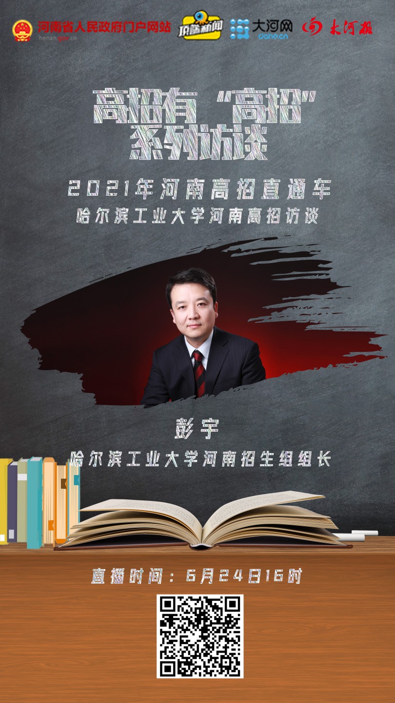 大河网讯(记者 刘杨/文 牧堃 贾志昊 韩淼宇 李彤 姜雨璐 实习生 樊雨晨 高鹏展/视频)2021年河南高考成绩即将“出炉”,非常关键的志愿填报环节即将开始。6月21日,由河南省人民政府门户网站、顶端新闻、大河网、大河报联合推出的“高招有‘高招’系列访谈”正式启动,6月24日,哈尔滨工业大学河南招生组组长彭宇受邀做客大河网直播间,为考生详解该校今年的招生政策,并为考生填报志愿支招。