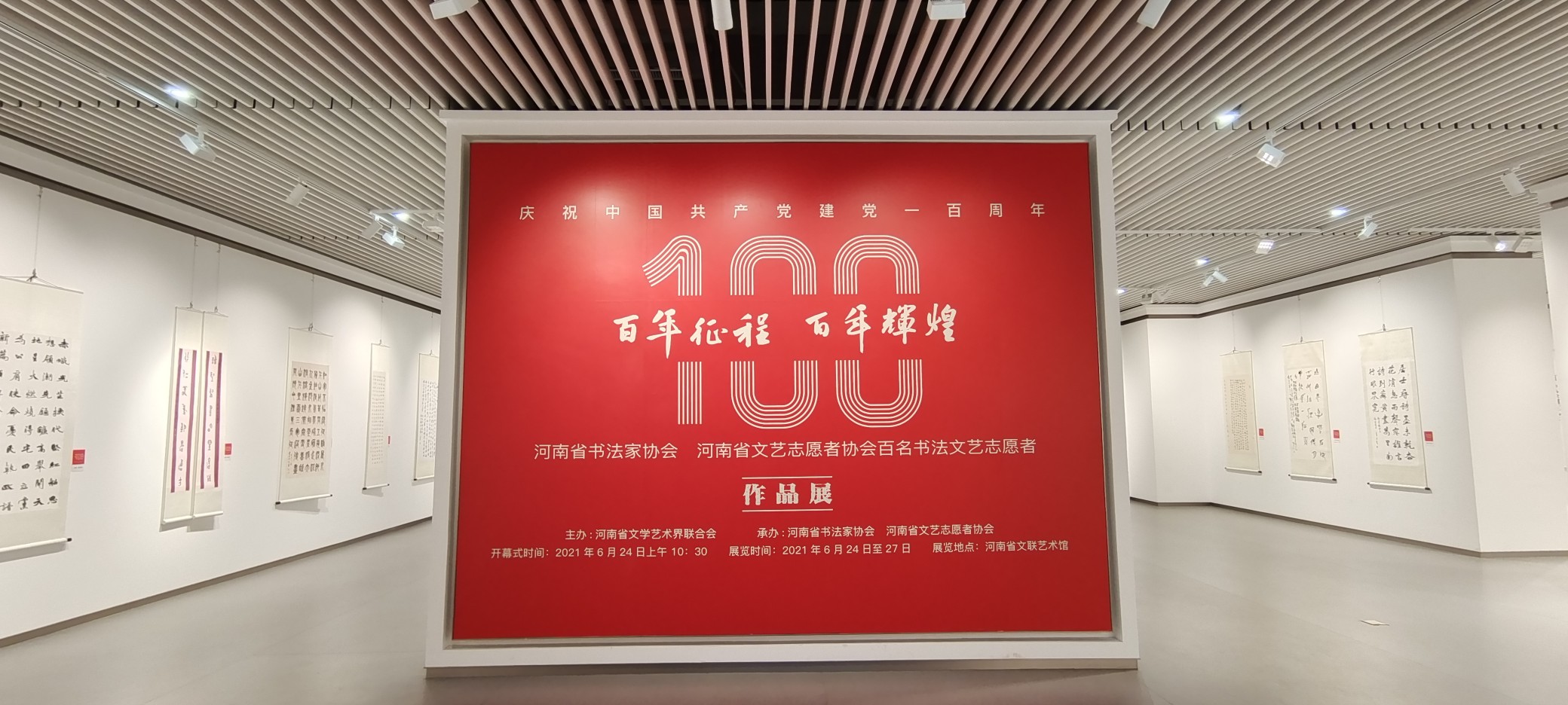 大河网讯(记者 莫韶华)礼赞美好时代,陶铸书法气象。6月24日,庆祝中国共产党成立一百周年“百年征程 百年辉煌”百名书法文艺志愿者作品展在河南省文联艺术馆开幕。