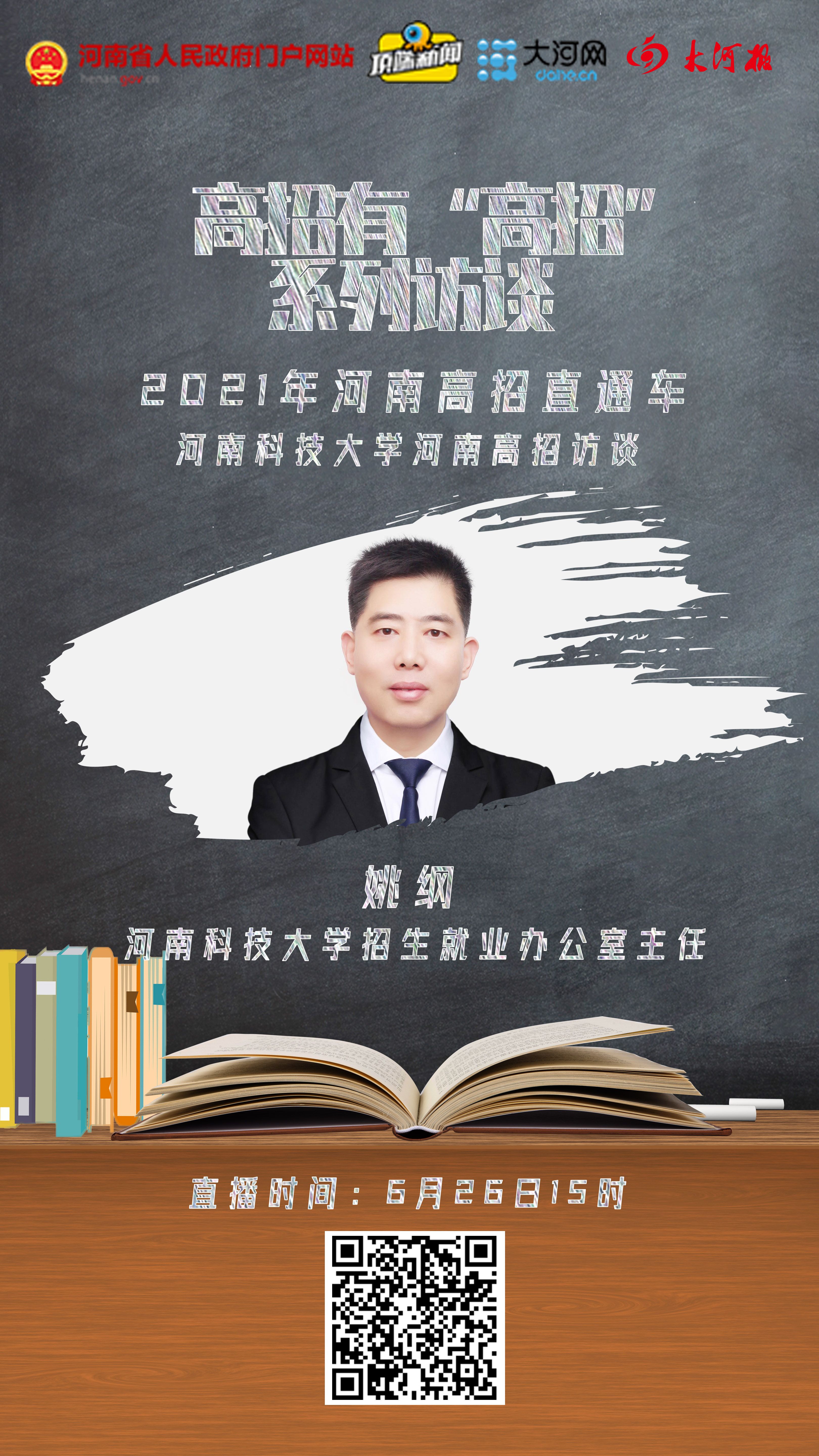 大河网讯(记者 刘杨/文 牧堃 贾志昊 韩淼宇 李彤 姜雨璐 实习生 樊雨晨 高鹏展/视频)坐落于“千年帝都,牡丹花城”、中原经济区副中心城市洛阳的河南科技大学是不少河南考生心目中的理想高校。6月26日,由河南省人民政府门户网站、顶端新闻、大河网、大河报联合推出的“高招有‘高招’系列访谈”邀请了该校招生就业办公室主任姚纲走进直播间,介绍今年招生政策的变化,为考生报考支招。