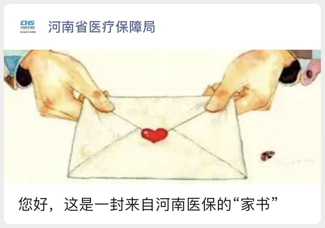 大河网讯 6月30日,河南省医疗保障局官方微信公众号发布《您好,这是一封来自河南医保的“家书”——致全省参保群众的一封信》。记者获悉,7月1日起,河南各地将陆续推出医保政策宣传讲解活动,深入群众身边解读医保惠民政策,让更多群众了解认识医保政策,更好享受医保惠民待遇。