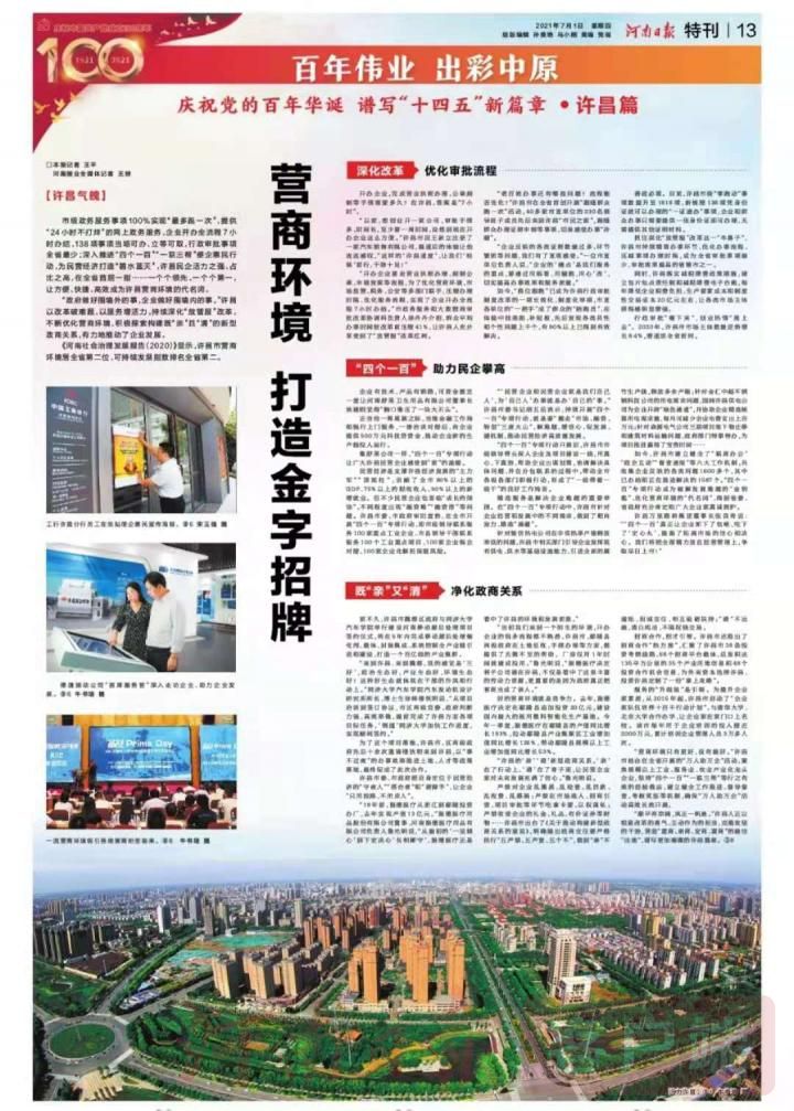 “政府做好围墙外的事,企业做好围墙内的事。”许昌以改革破难题,以服务增活力,持续深化“放管服”改革,不断优化营商环境、积极探索构建既“亲”且“清”的新型政商关系,有力地推动了企业发展。