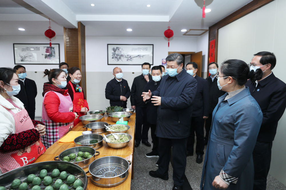 ↑2020年3月30日,习近平在浙江湖州市安吉县天荒坪镇余村了解农家乐经营和特色农产品销售情况。