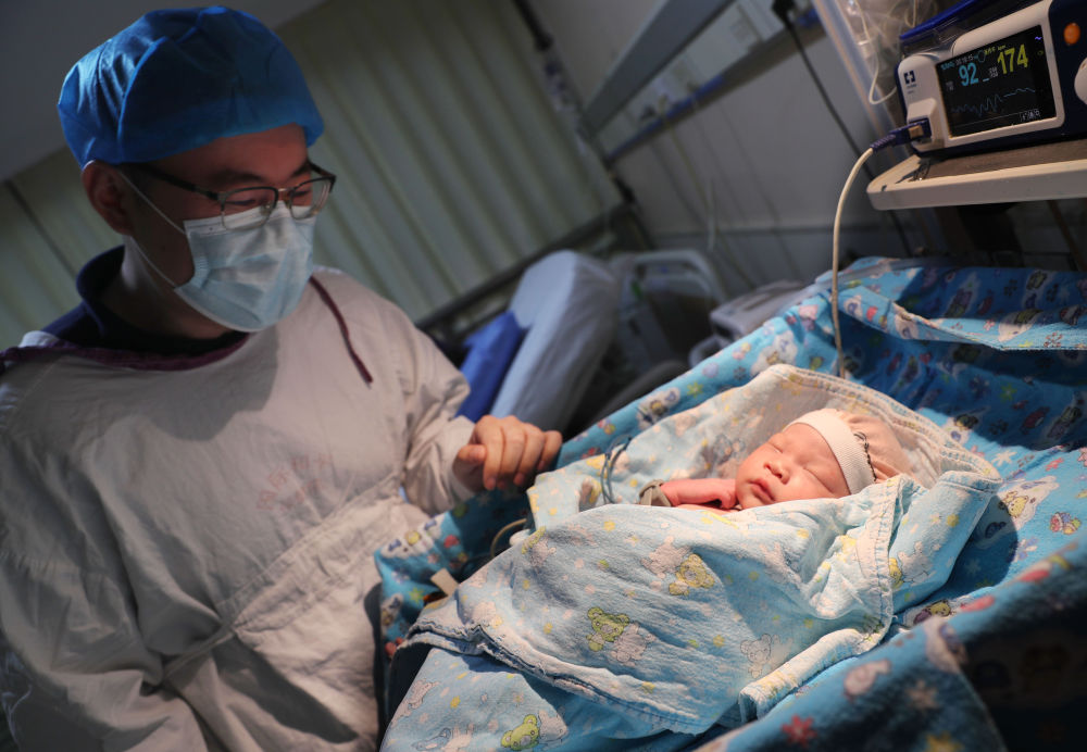 ↑2021年7月1日凌晨,在中国福利会国际和平妇幼保健院,一位爸爸在看自己的女儿。她是该院当日首名新生儿。