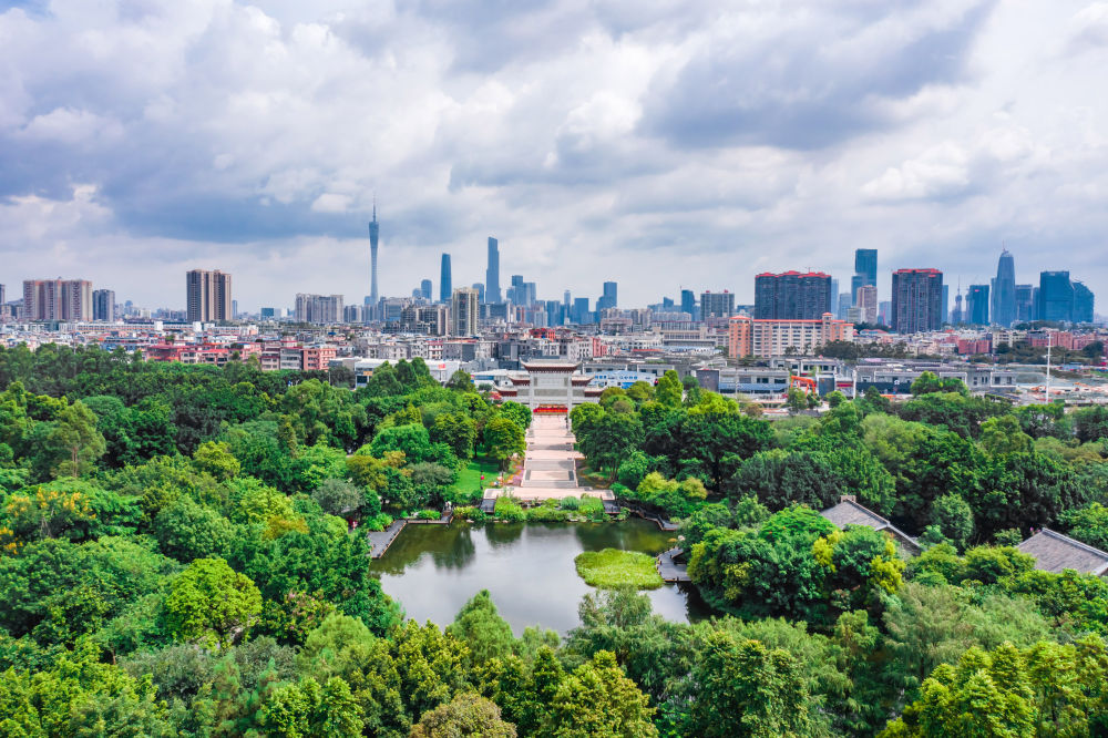 ↑2021年7月1日拍摄的位于广州市中心城区的海珠湿地景色。