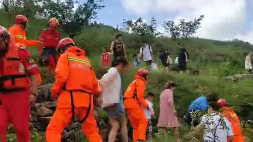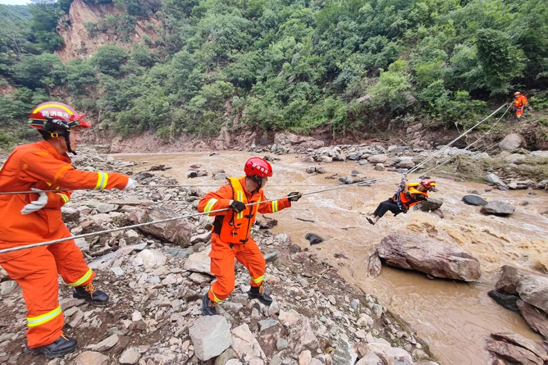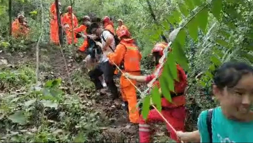 10时49分,119指挥中心接到报警称,思礼镇九里沟景区方向有四名群众被困山上水洪池村,指挥中心立即调派特勤站抗洪抢险突击队赶赴现场。救援人员到达水洪池村山下的九里沟停车场,经向附近群众询问得知,前往山上的大桥已被湍急的洪水淹没,部分路段已被山上的滚石断枝和高水位洪水阻断。这时候,救援人员立即更改救援计划,决定徒步上山。在上山过程中,救援人员遇到被困群众,随后将其疏散至安全区域。