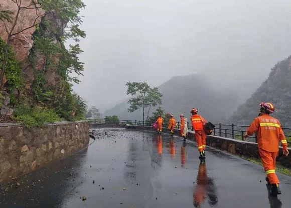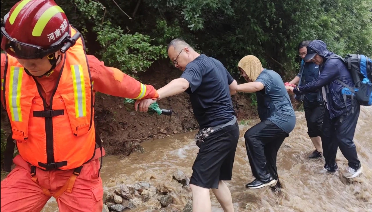 11日10时01分,济源市119指挥中心接到报警,王屋山风景区平阳宫附近7个人被困,王屋消防站立即赶赴现场。救援人员到场后发现,景区内道路出现坍塌,水流湍急,加之雨越下越大,救援人员在确保被困人员安全的情况下,研究制订下一步转移计划。随后,救援人员将被困群众安全转移。