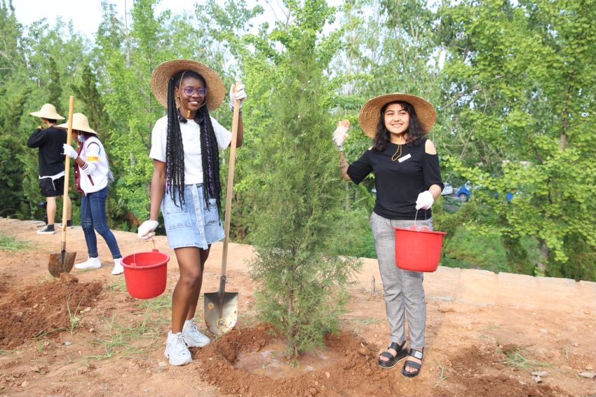 在卫辉市唐庄镇,留学生们聆听了唐公山上吴金印带领村民苦干13年,人工开凿出了600多万个鱼鳞坑的故事,他们纷纷用“震撼”来形容自己的感受。留学生们还戴上草帽、拿起铁锹,亲手种下一片“友谊林”;在宝泉景区,留学生们了解了其产业转型,致富村民的发展之路。