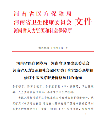 大河网讯 7月20日,记者从河南省医疗保障局获悉,为支持中医诊疗技术的传承、创新和发展,充分发挥中医药在健康中原建设和保障人民健康中的作用,河南省医保局会同省卫生健康委、省人力资源和社会保障厅印发《关于确定部分新增和修订中医医疗服务价格项目的通知》(以下简称《通知》),新增和修订中医医疗服务价格项目136项,其中,新增医疗服务价格项目13项(10项纳入医保支付),修订医疗服务价格项目123项,自2021年9月1日起执行。