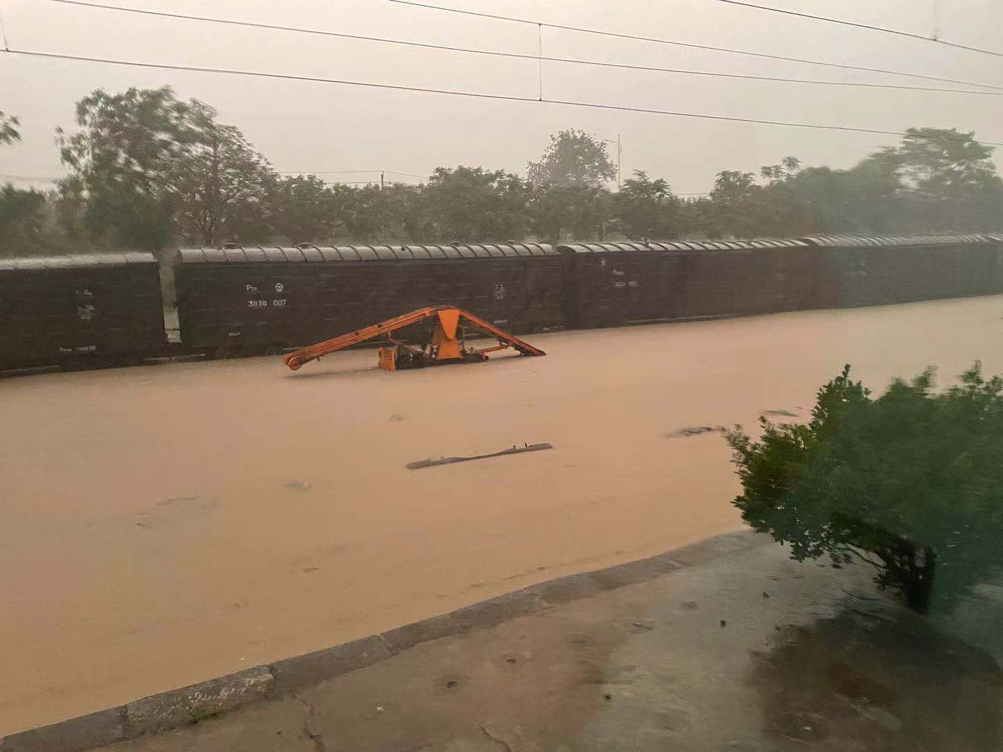 “因持续暴雨淹没铁路,水流冲击导致路基下沉,停在区间的K599次列车机后第3位和第4位车辆发生倾斜。”7月20日国家铁路集团通报称。