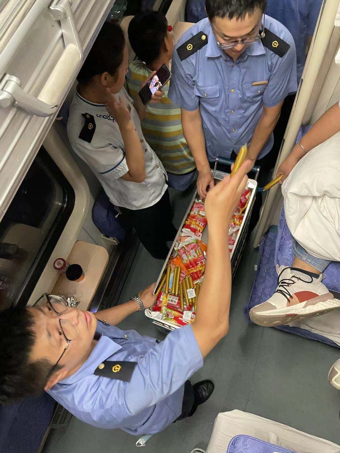 “虽然每节车厢上都有列车员,但是人太多列车员也忙不过来。”陈安表示,他和同学作为党员代表,与车上的现役、退役军人代表一起,组成了志愿者团队,协助列车长紧急对接、发放物资。