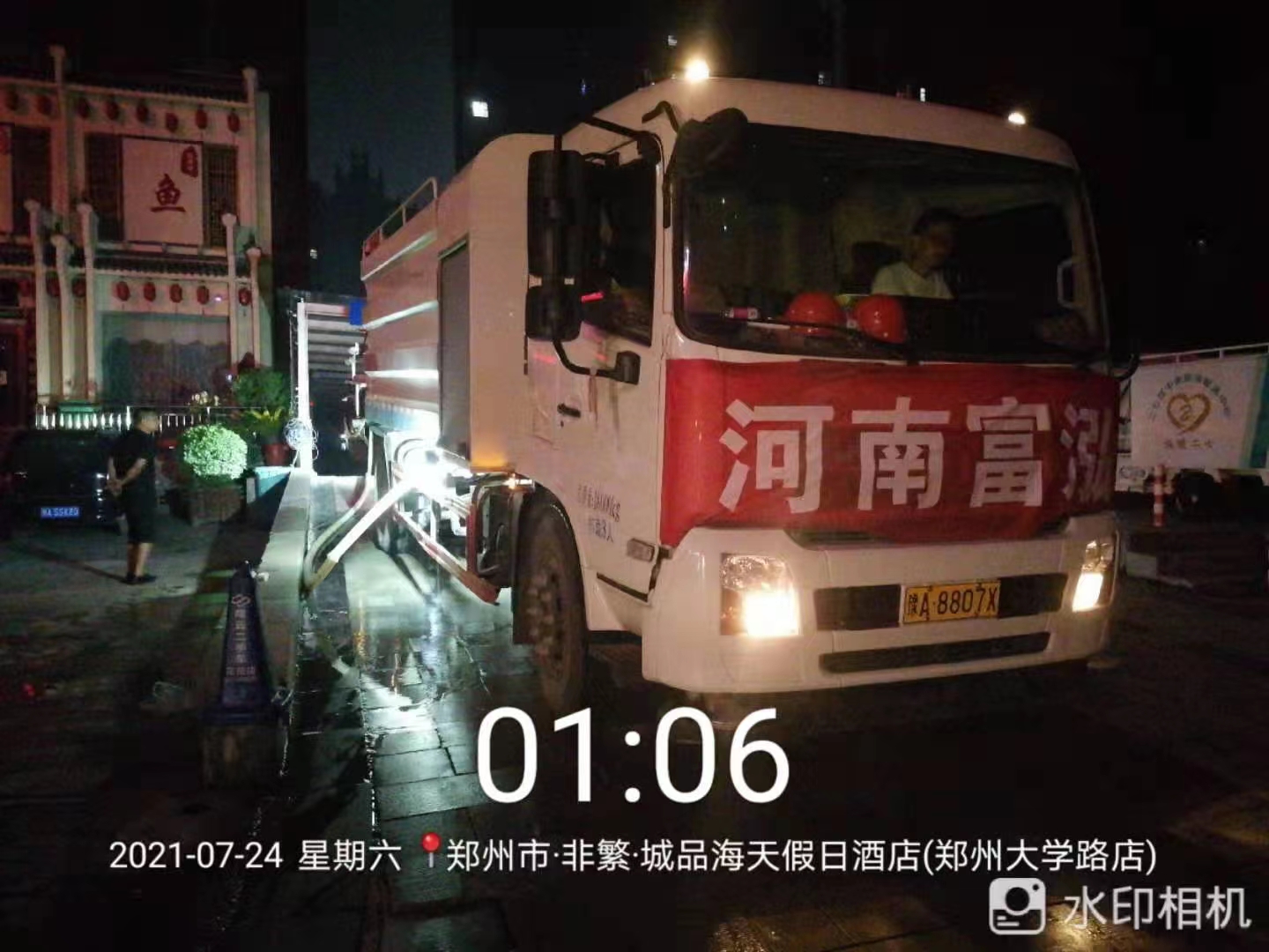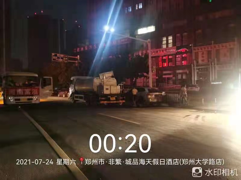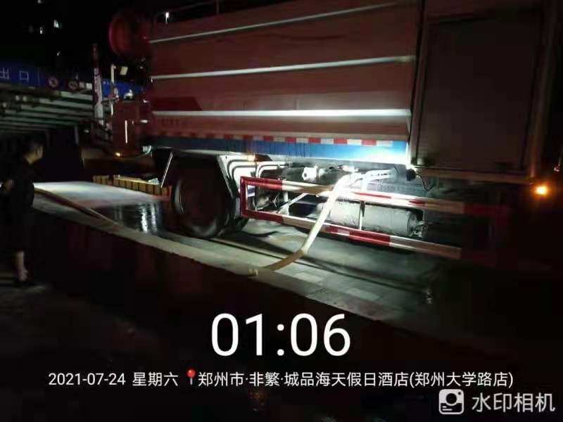 到达现场的李师傅立即群内告知,在固管处领导的迅速协调下,一个、两个……三个,其他区域的水车师傅立即响应,不顾一天的疲惫,再次注满水车奔赴酒店,短短个把小时8辆水车齐聚酒店,工作直至24日凌晨两点,终于将水箱注满。