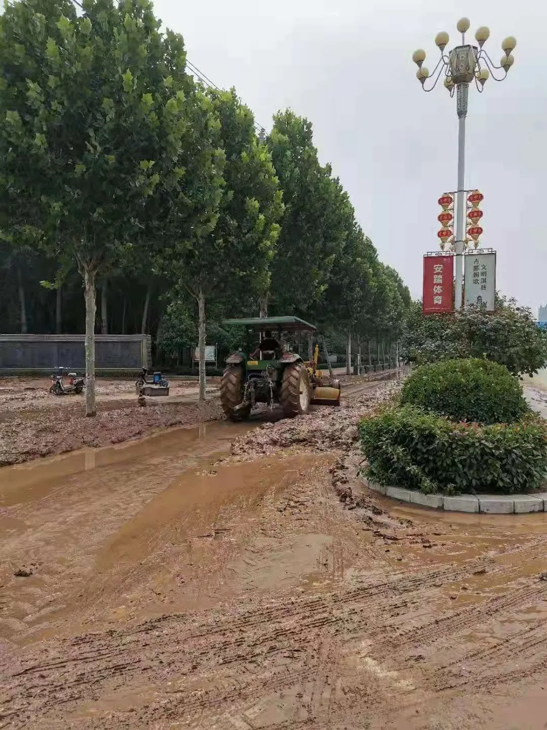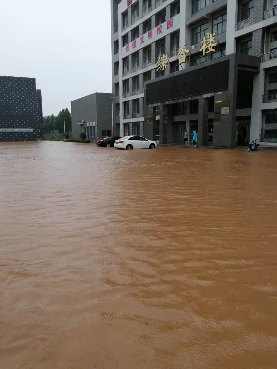 22日中午的淇县一中,积水尚未完全退却