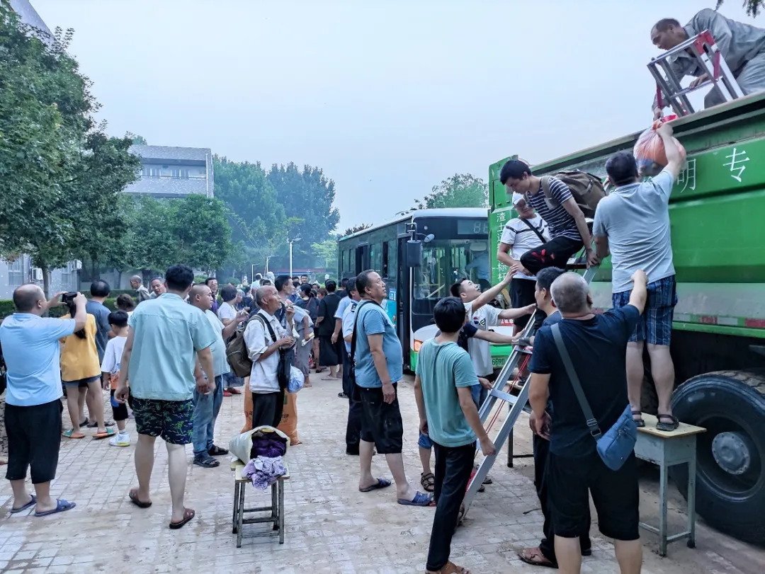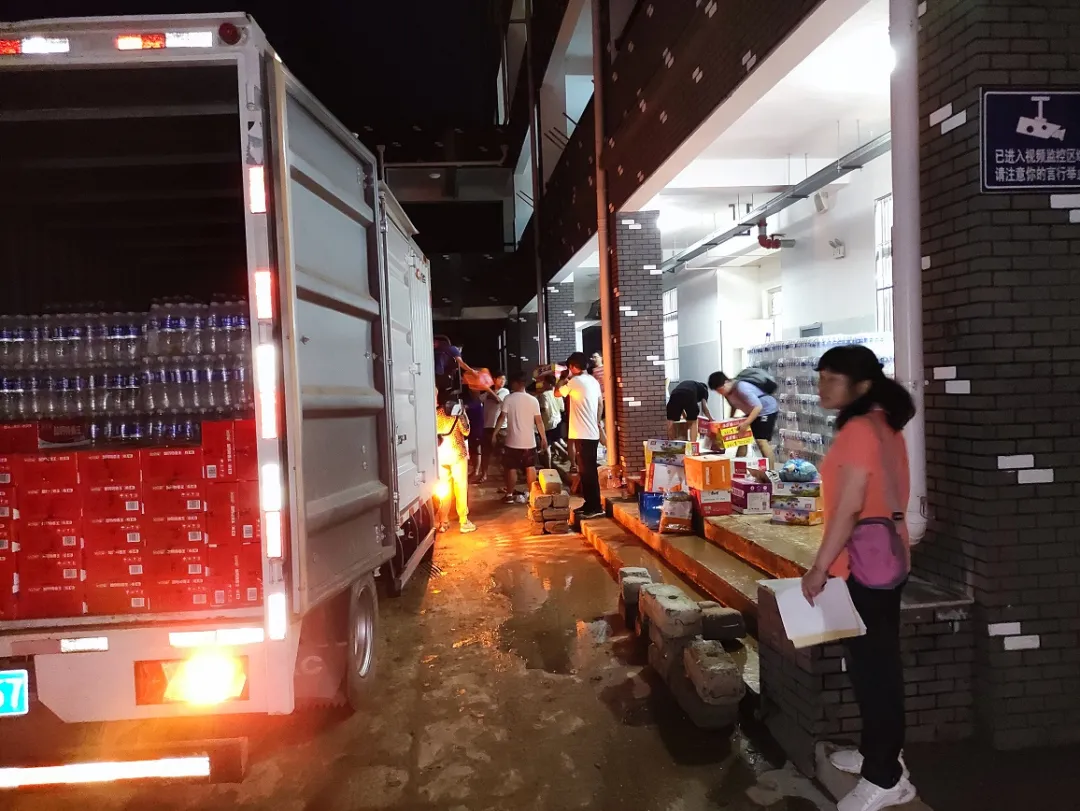 受灾群众入住后,强化后勤保障,及时为受灾群众配备饮用水、洗手液、蚊香等相关生活用品以及一日三餐,确保每一位受灾群众都能得到妥善安置。一些本已休假的教职工主动请缨,放弃假期时间自觉参与其中,与来自社会各界的志愿者自发组建志愿服务团队,为安置点的群众送去救援物资等。