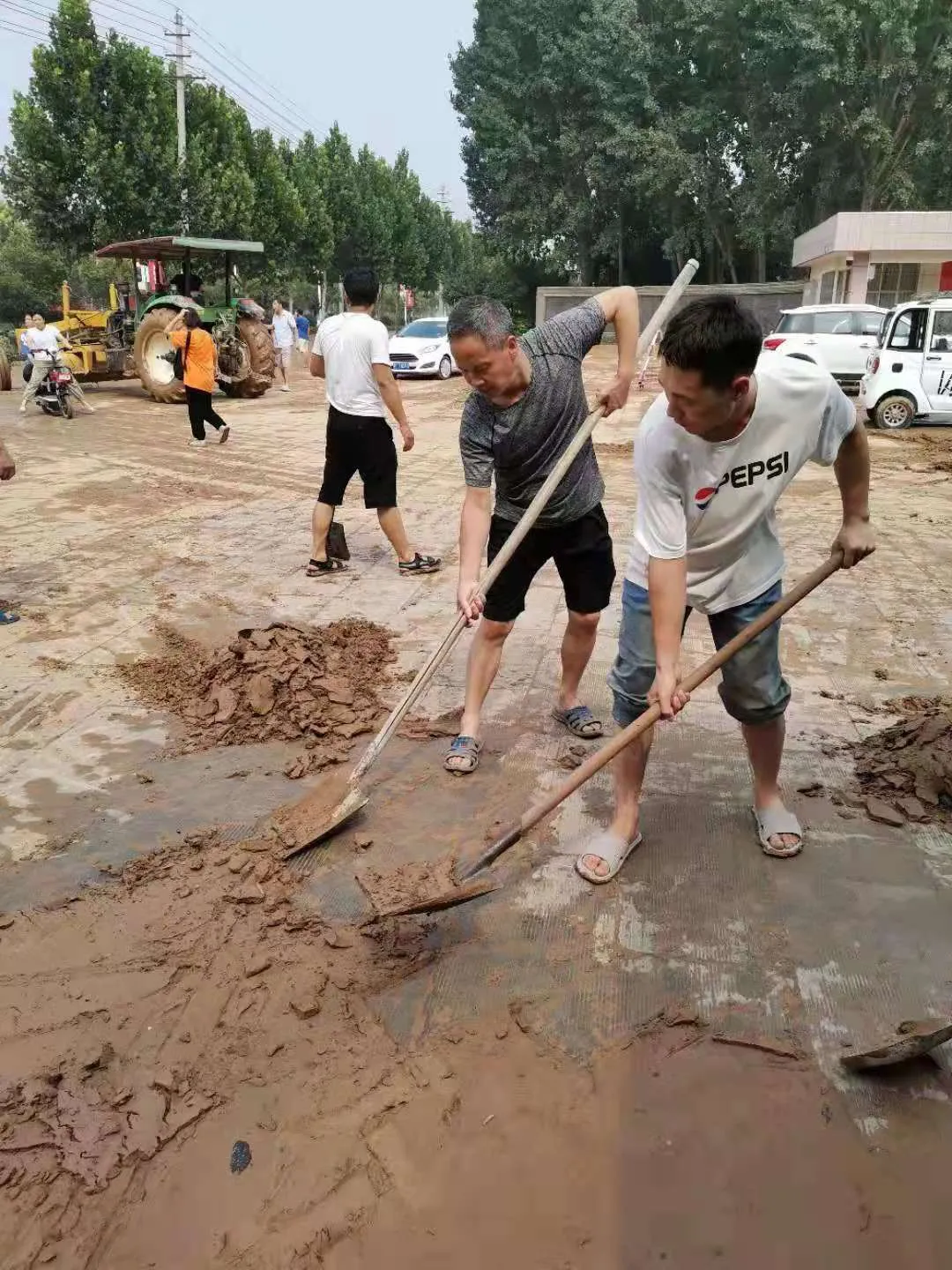同时动用车辆清淤