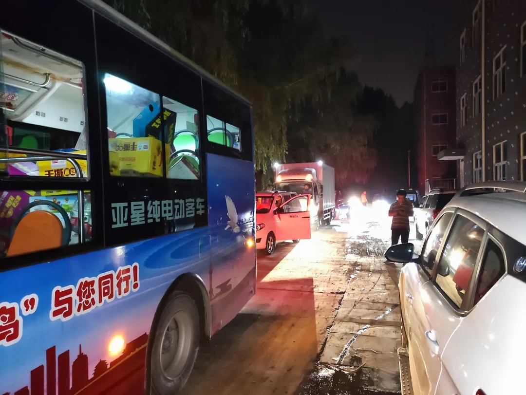 深夜仍然源源不断开来的物资运输车辆