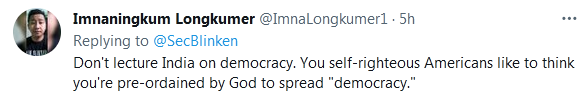 布林肯出发访印的推特底下也有不少“不欢迎”的民众声音存在。↓