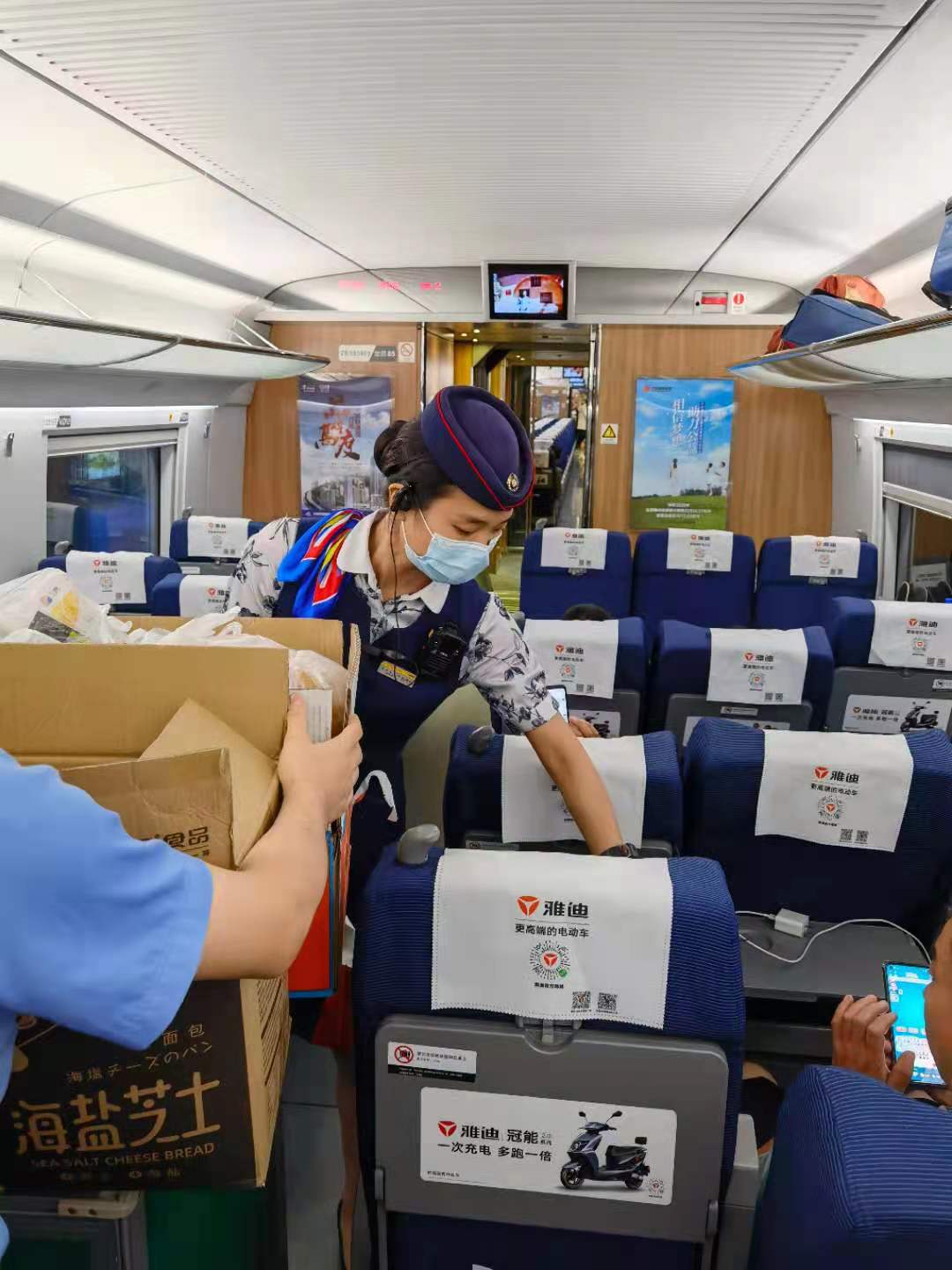 来不及休息,李怡霖立即组织乘务人员与保洁一起打扫车内卫生恢复车容,然后关闭全列车门在车内待命。