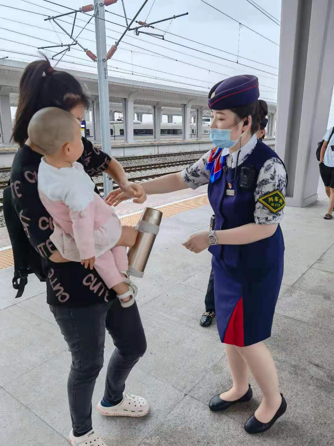 在长治东站滞留的时间里,李怡霖才终于想起和家里人通话报了平安,顾不上坐下来就和乘务员、保洁大姐谈心,安抚情绪,了解困难,相互鼓励!顾不上自己的疲惫无助,顾不上自己的病痛,因为她知道自己是党员,知道自己要扛起怎样的责任和担子!