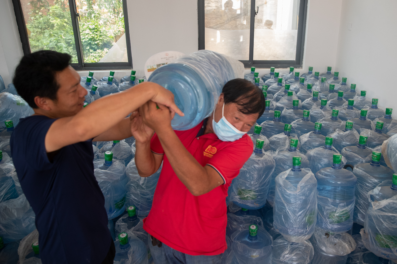 工作人员正在搬运饮用水。