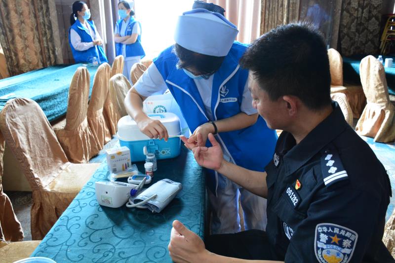 活动中,无论是在执勤卡点还是驻地集中义诊,参加义诊活动的医护人员都充分利用扎实的专业功底,不管是健康咨询还是问诊检查都耐心细致。尽职尽责地为民警测量血压、检测血糖,并根据每个人的身体状况给出合理建议,对民警提出的每一个问题都耐心进行解释、指导,对工作强度比较大的执勤民警,医疗小组心理专家及时进行心理疏导。