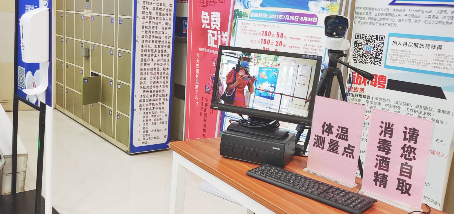 “因疫情防控,此门暂时封闭,请走1、2、3号主大门。”记者在现场看到,拥有10多处出口的商场今天只开了三个主门,门口张贴着疫情防控通知,放置有扫码牌,摆放着酒精、洗手液等消杀防疫物资,还设置有体温检测仪,所有市民进门后都主动掏出手机扫码向工作人员出示,一切井然有序。
